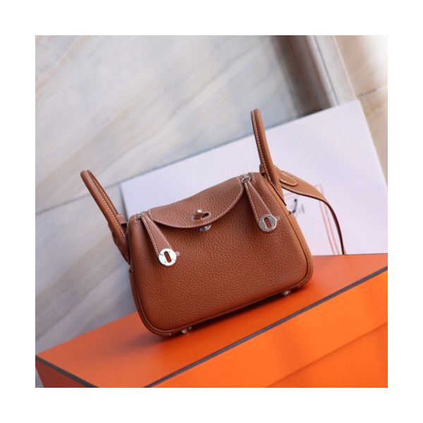 에르메스 미니 린디백19 골드브라운 은장 끌레망스 가죽