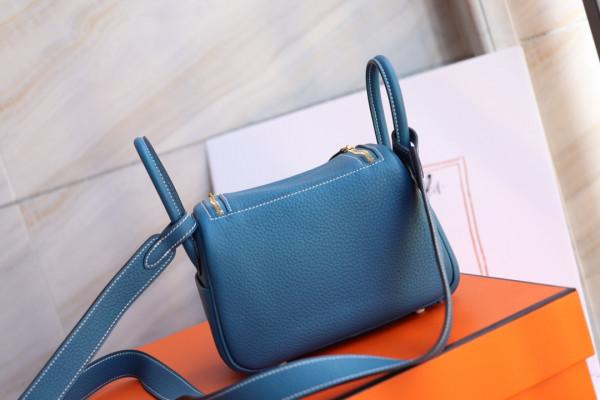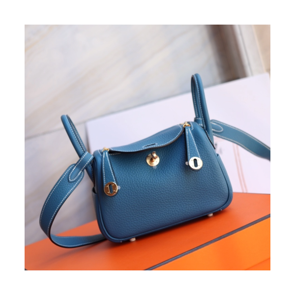 • 에르메스 미니 린디백19 블루드플루스 금장 끌레망스 가죽