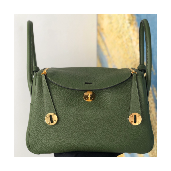 에르메스 린디백26 그린 금장 끌레망스 가죽