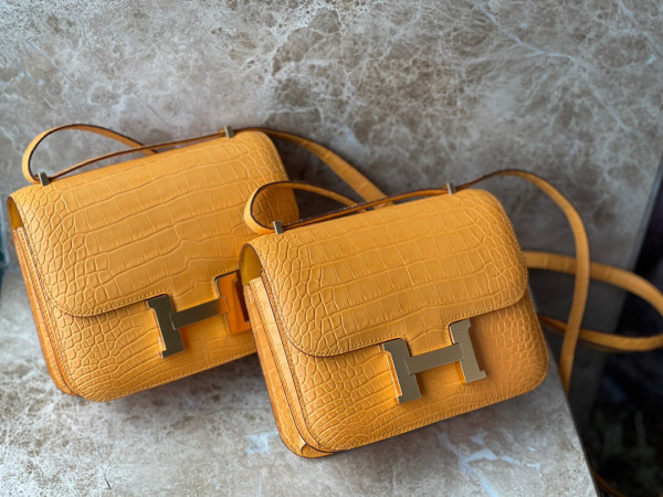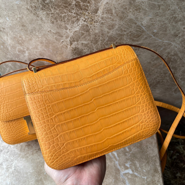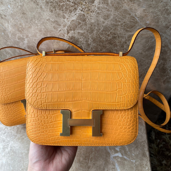 에르메스 콘스탄스18 앰버 옐로우 금장 악어가죽