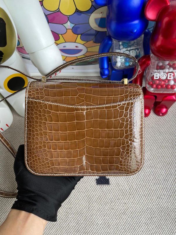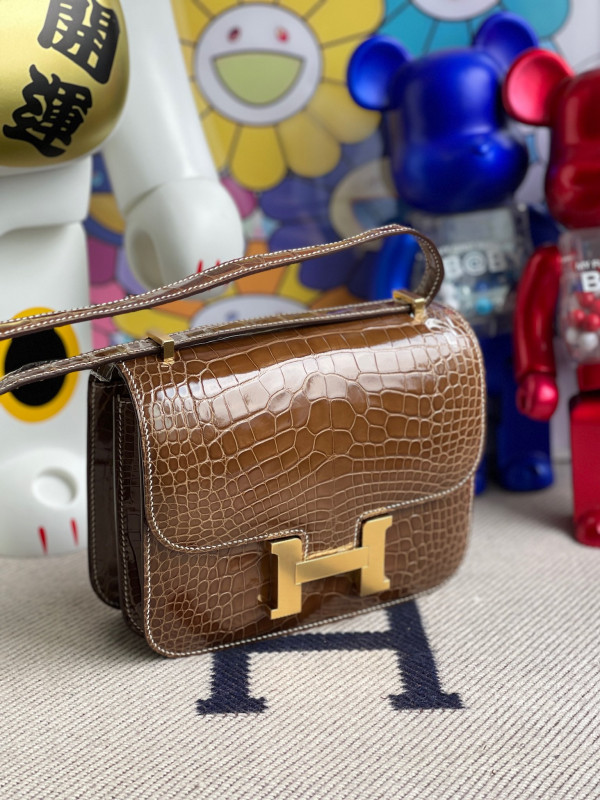 에르메스 콘스탄스18 브라운 금장 샤이니 악어가죽