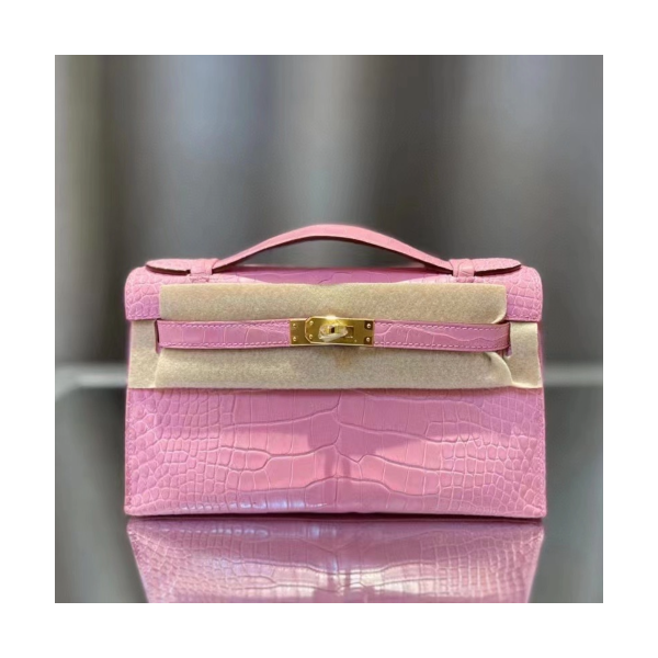 • 에르메스 켈리 포쉐트 핑크 금장 악어가죽