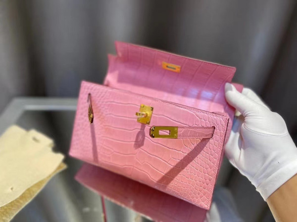 에르메스 켈리 포쉐트 핑크 금장 악어가죽