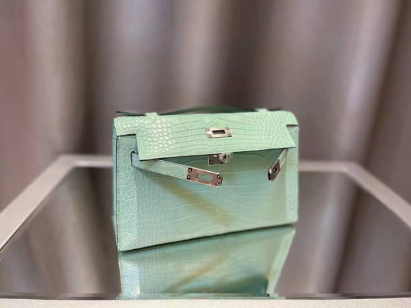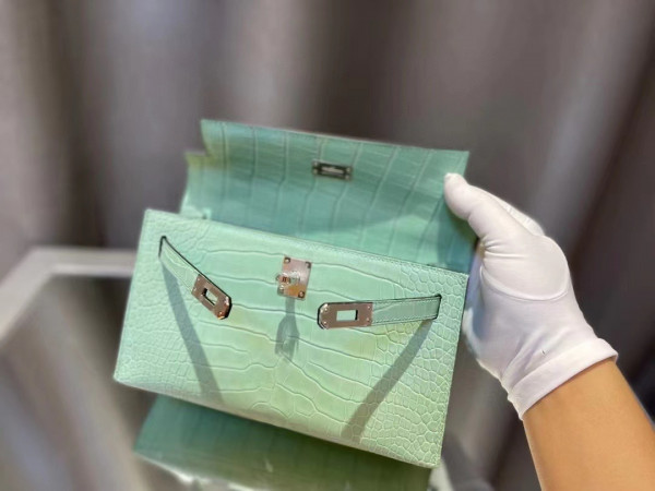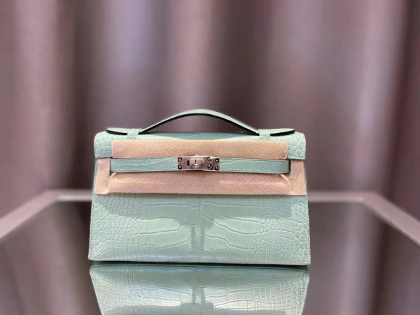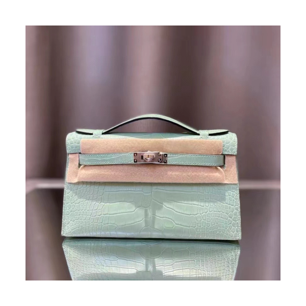 에르메스 켈리 포쉐트 민트 은장 악어가죽