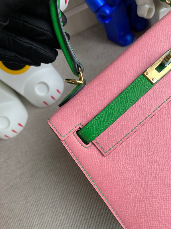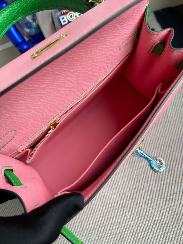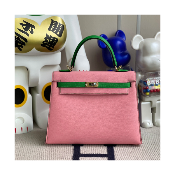 • 에르메스 켈리백25 핑크 그린 금장 앱송