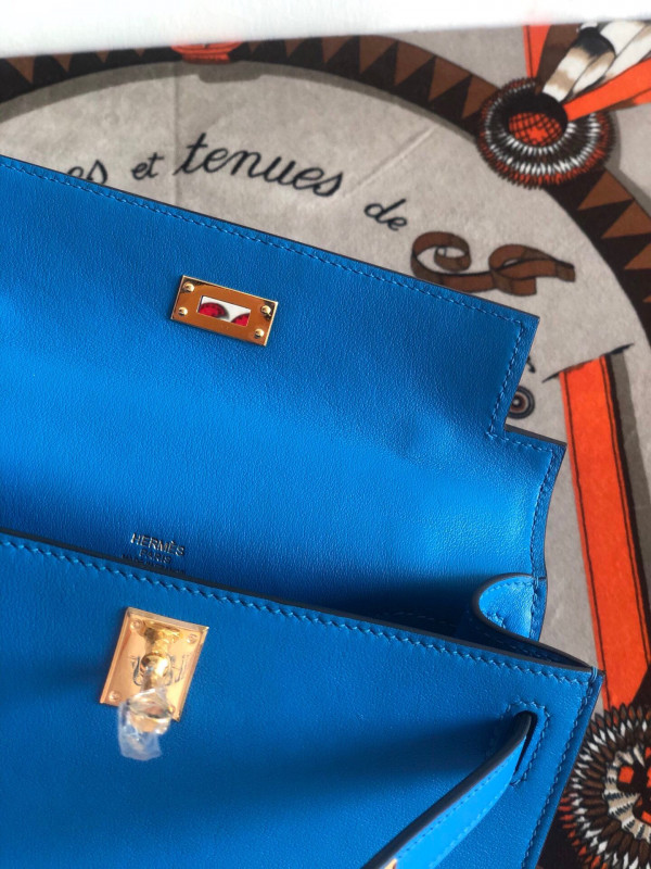 에르메스 미니 켈리백22 블루 금장 스위프트