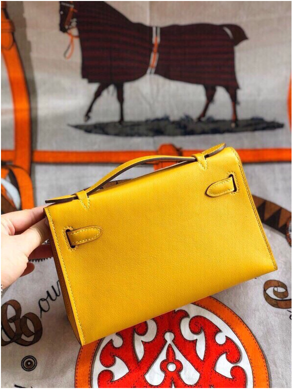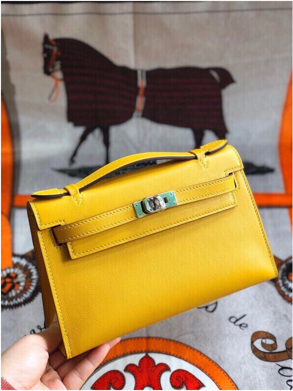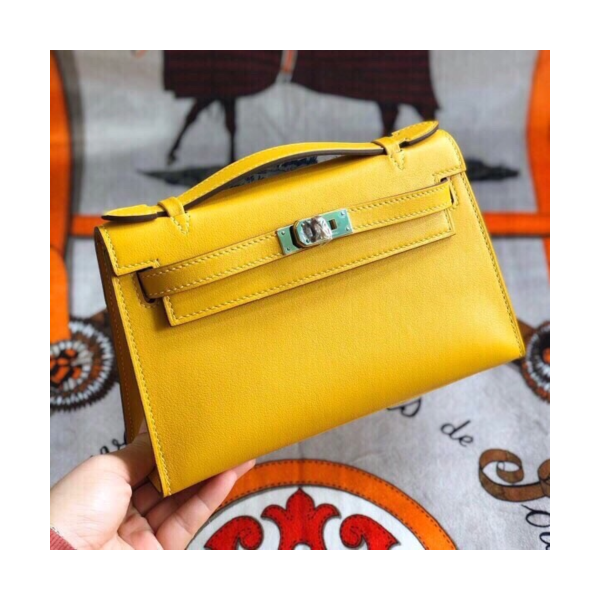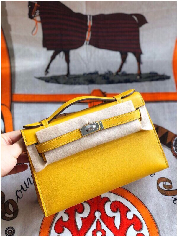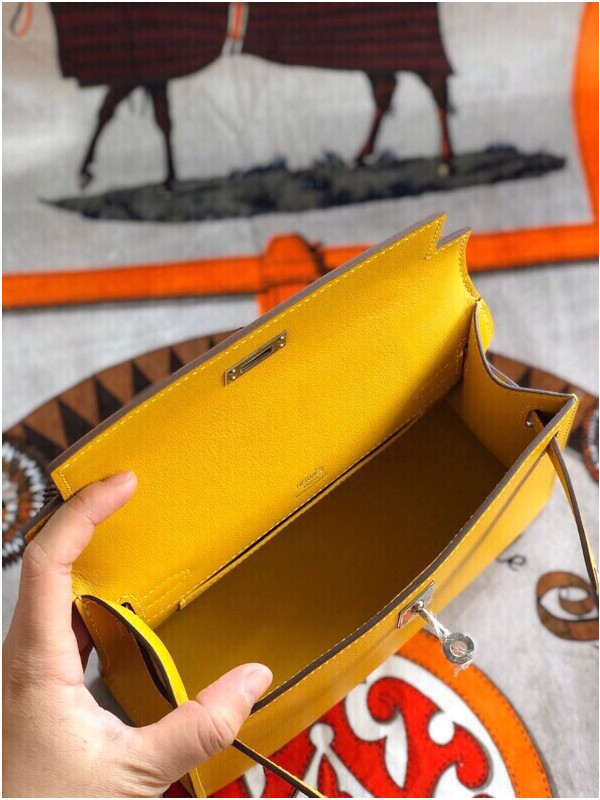 에르메스 미니 켈리백22 앰버 옐로우 은장 스위프트