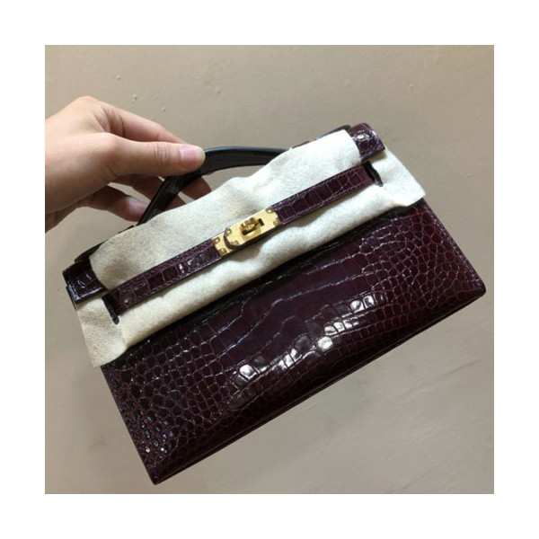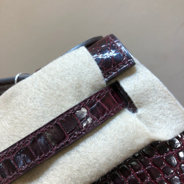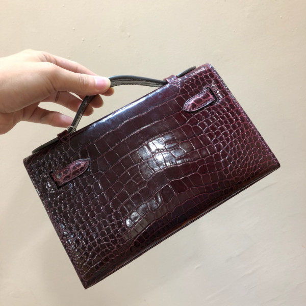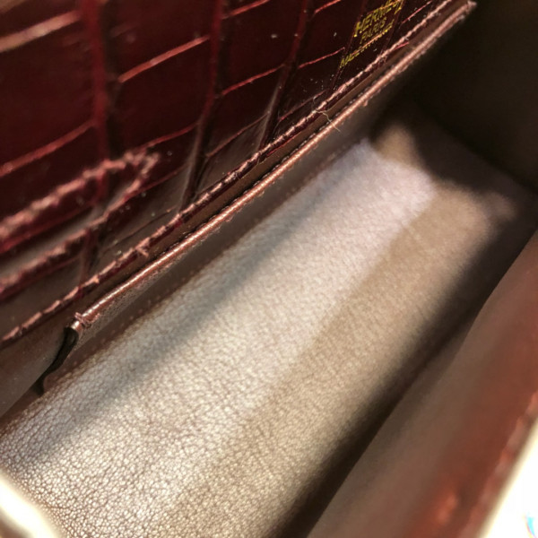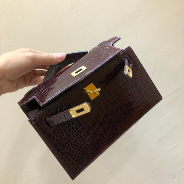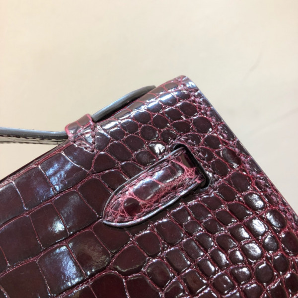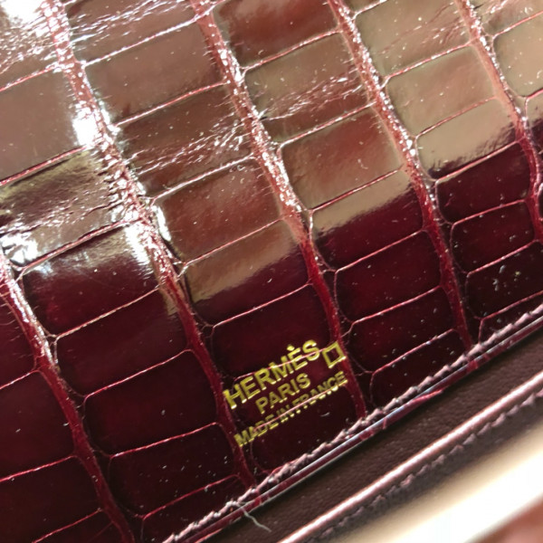 에르메스 미니 켈리백22 버건디 금장 샤이니 악어가죽