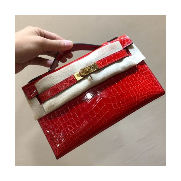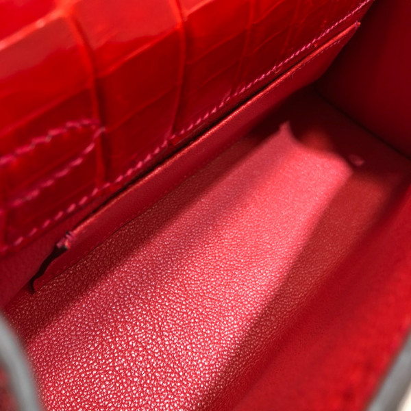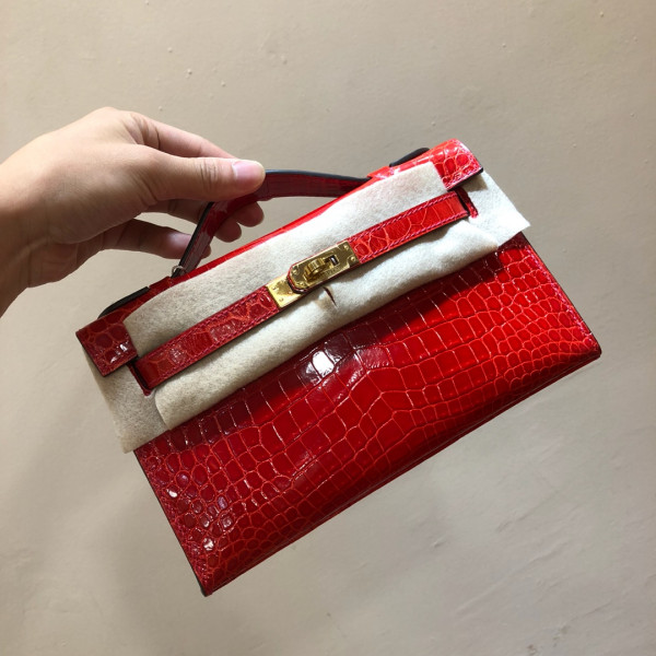 • 에르메스 미니 켈리백22 레드 금장 샤이니 악어가죽