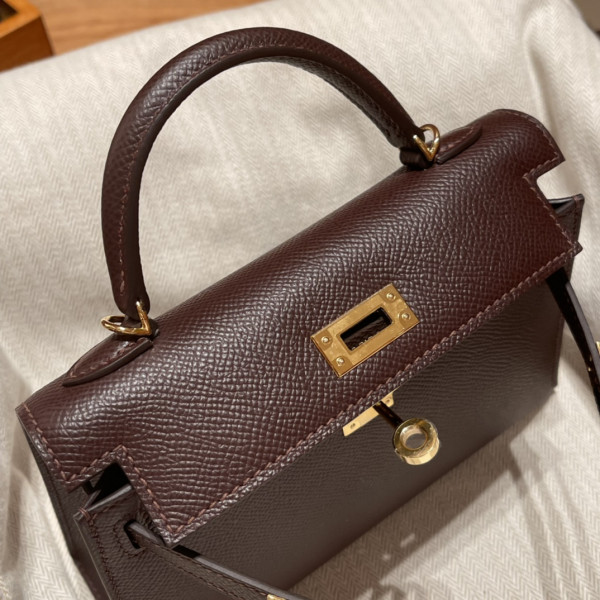 에르메스 미니 켈리백19 브라운 금장 앱송