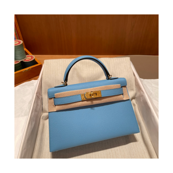 • 에르메스 미니 켈리백19 라이트블루 금장 앱송