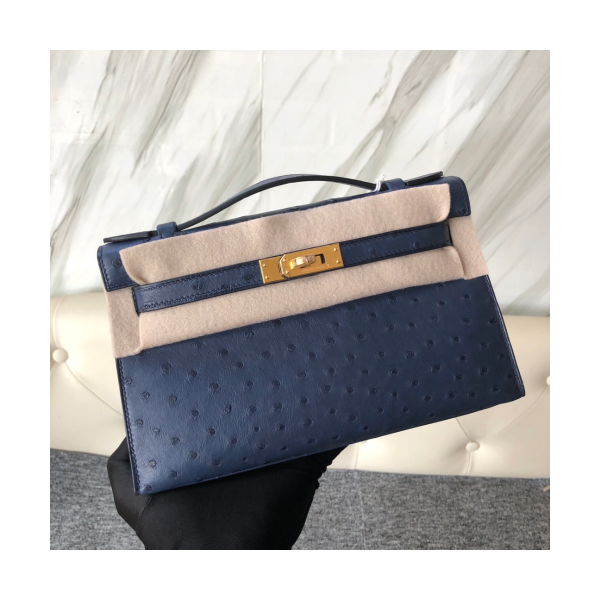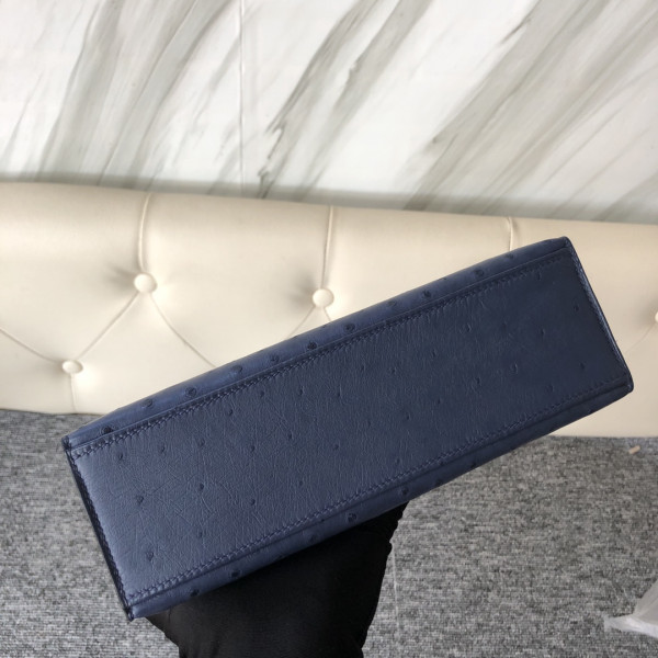 에르메스 미니 켈리백22 몰타블루 금장 타조가죽