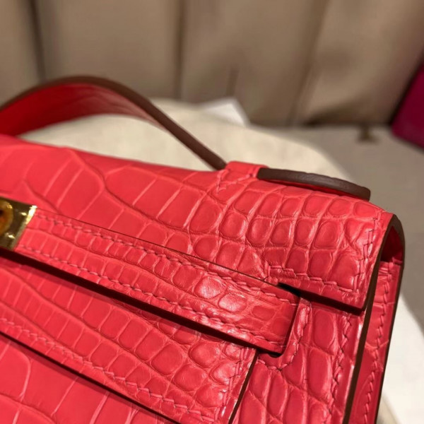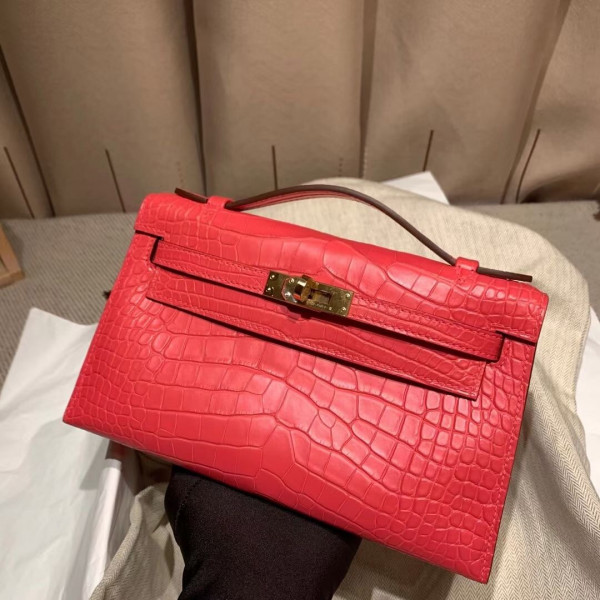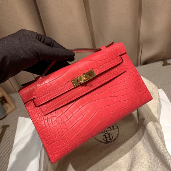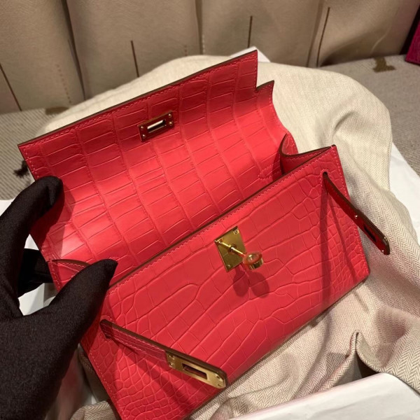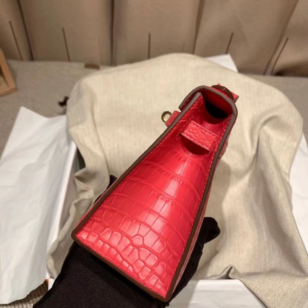 • 에르메스 미니 켈리백22 레드 금장 악어가죽