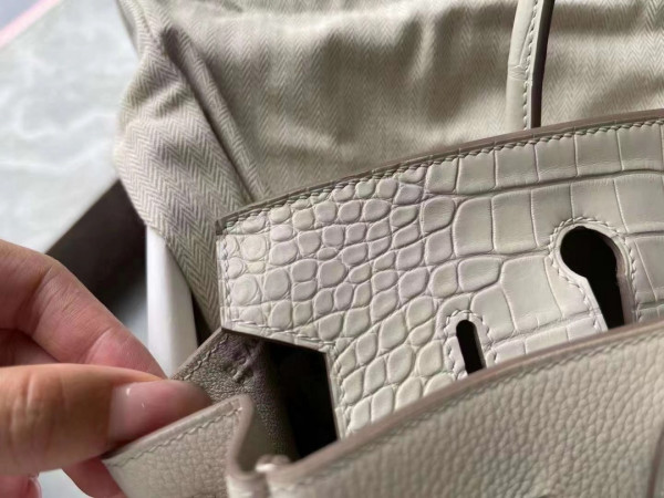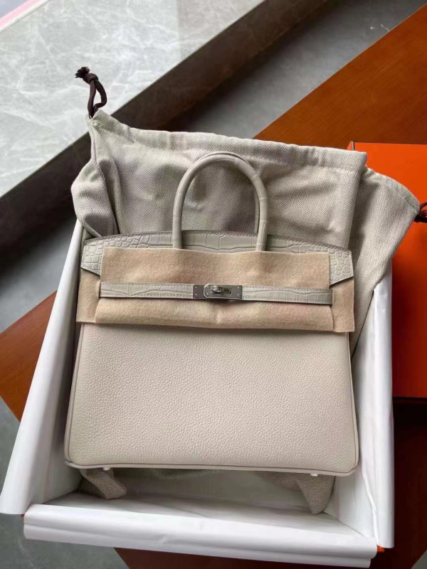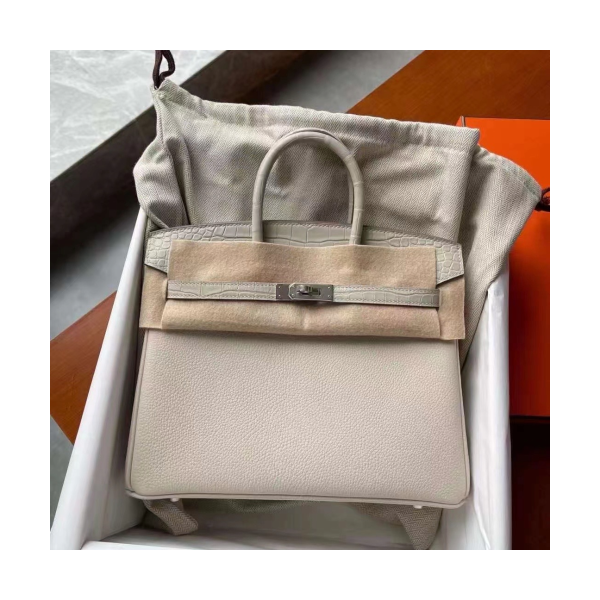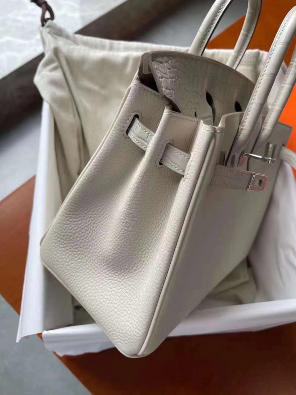 에르메스 버킨백25 화이트 은장 악어가죽 핸들