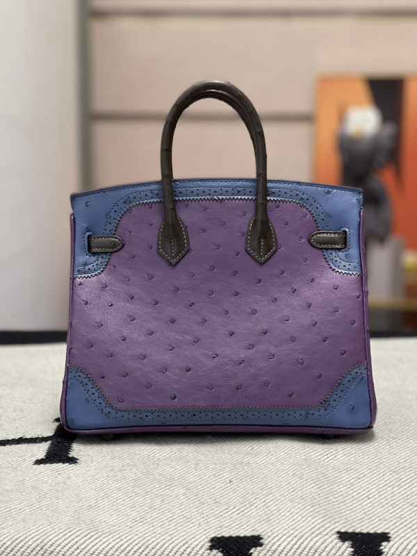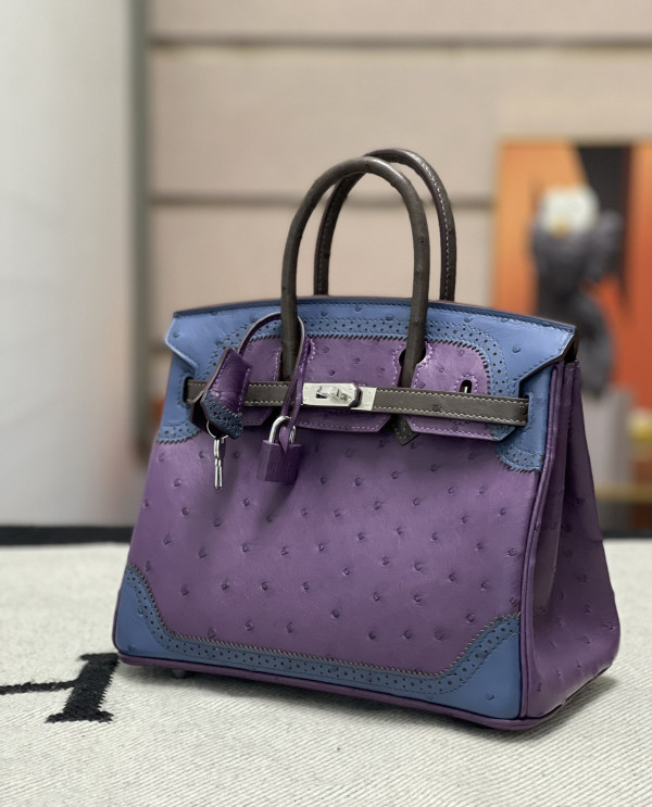 • 에르메스 버킨백25 퍼플 블루 브라운 은장 타조가죽