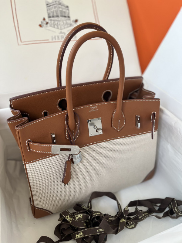 에르메스 버킨백30 골드브라운 캔버스 패치워크 스위프트 은장