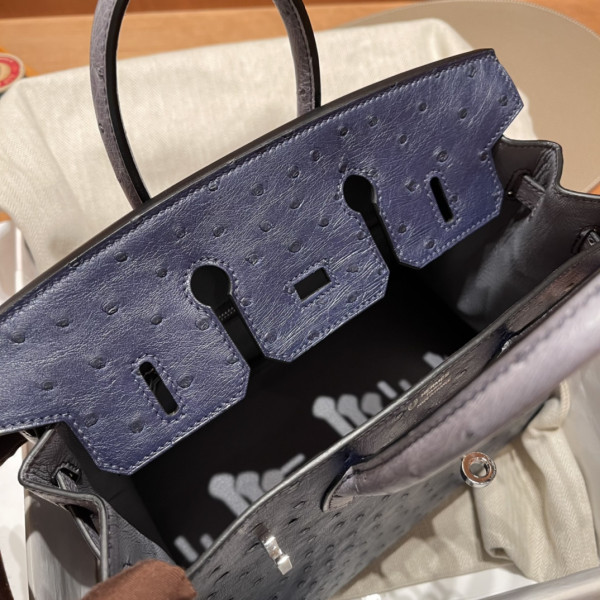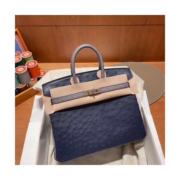 에르메스 버킨백25 몰타블루 그레이 은장 타조가죽