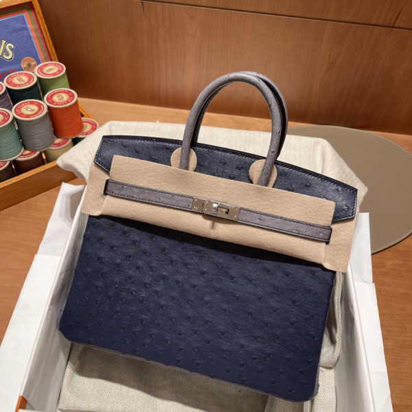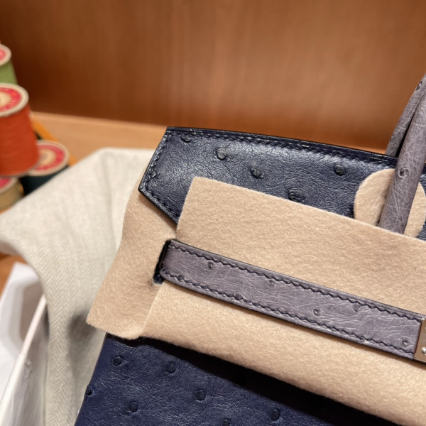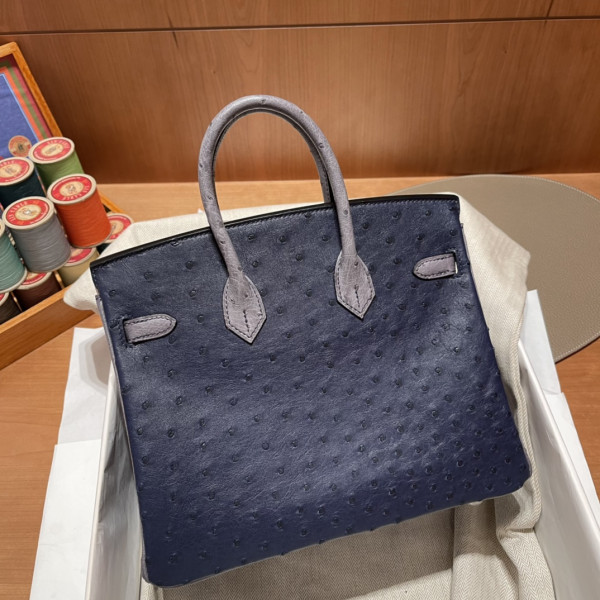 • 에르메스 버킨백25 몰타블루 그레이 은장 타조가죽