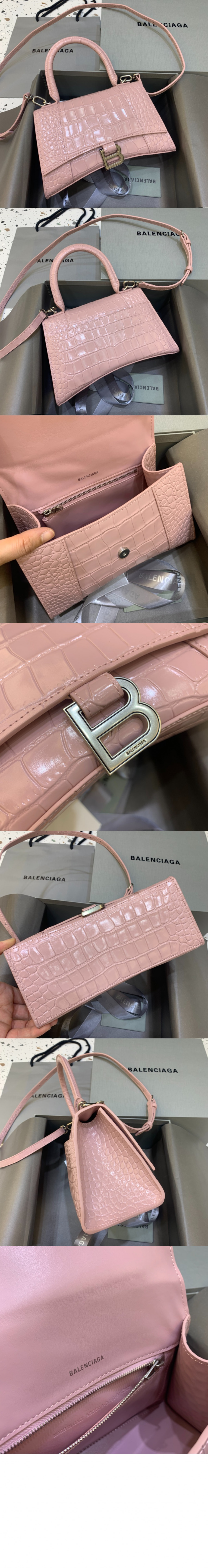 발렌시아가 아워글래스 XS 크로커다일 엠보싱 핸드백 핑크 592833