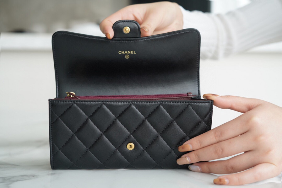 샤넬 장지갑 램스킨 금장 A80758