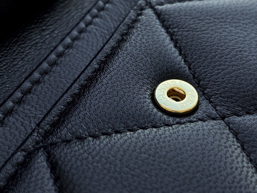 샤넬 클래식 미니 파우치 네이비 캐비어 금장 15 x 9.5CM
