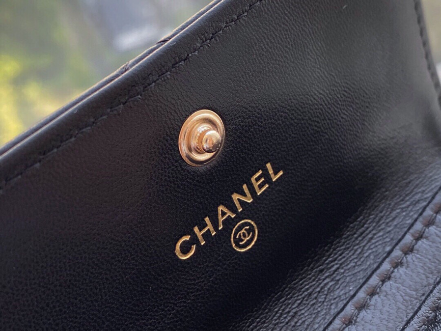 샤넬 19 플랩 카드지갑 램스킨 금장 블랙 AP1790