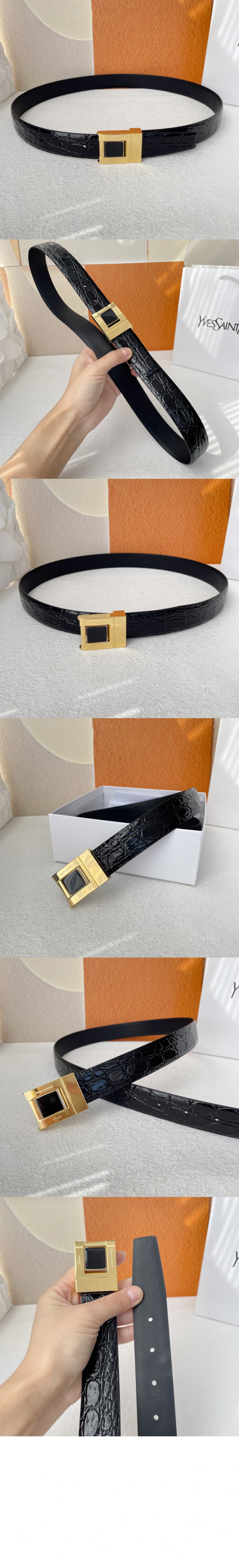 생로랑 악어 엠보 가죽 버클 협벨트 658518
