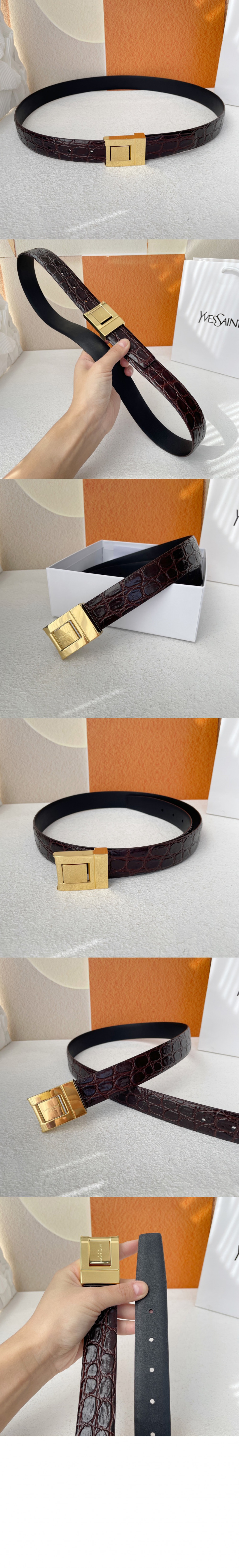 생로랑 크로커다일 엠보 가죽 더블 버클 협벨트 732557