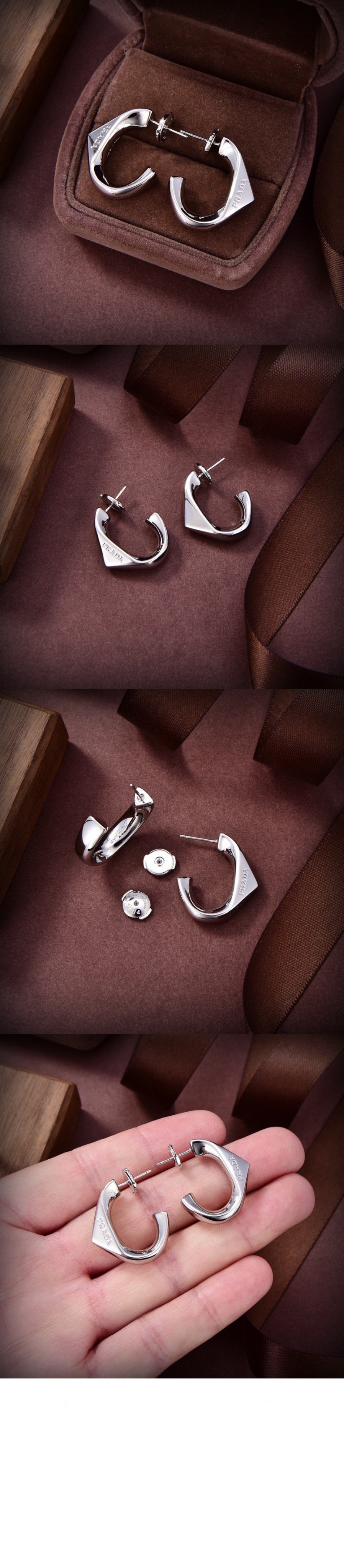 프라다 크리스털 로고 보석 지르콘 귀걸이 1JO768
