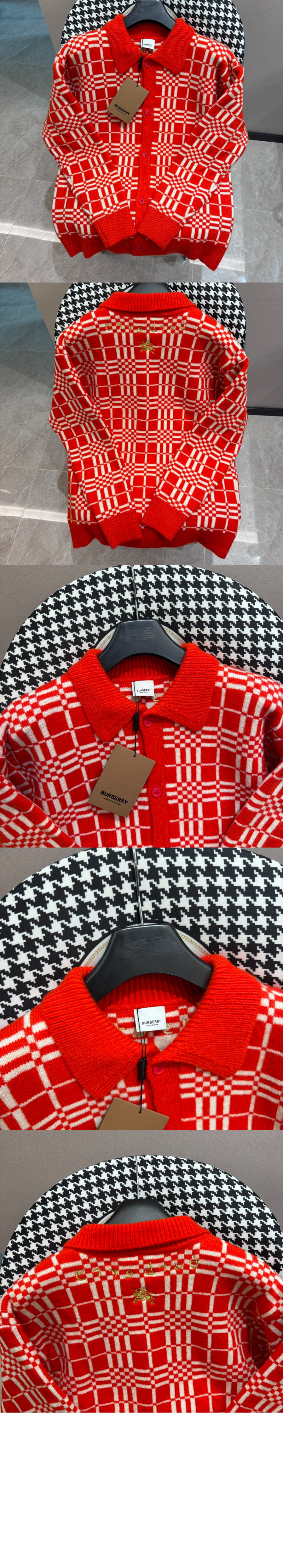 버버리 체크 울 캐시미어 가디건