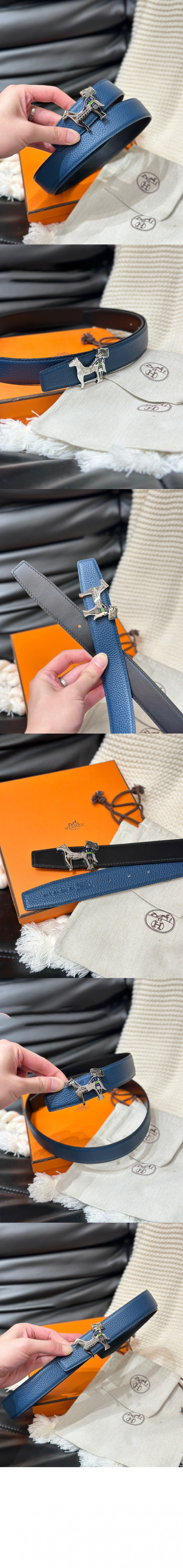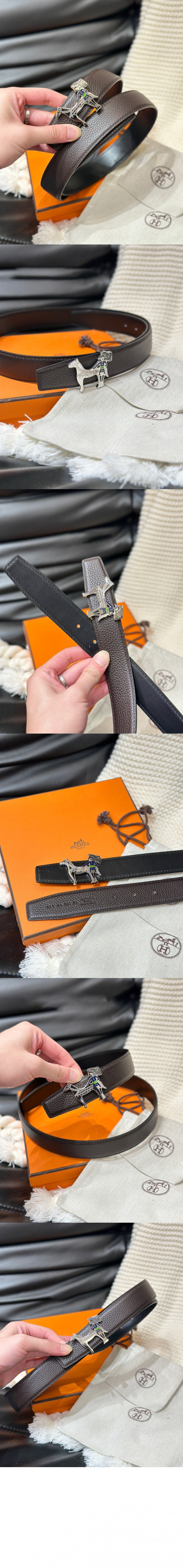 에르메스 테이트 드 쉐발 양면 가죽 벨트
