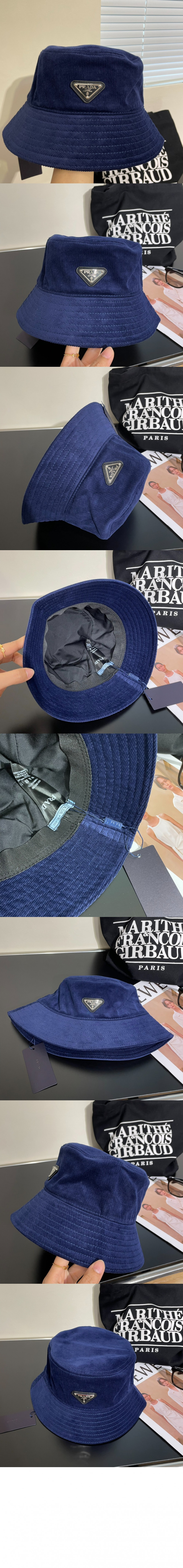 프라다 코듀로이 자수 벙거지 1HC257