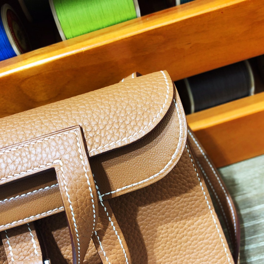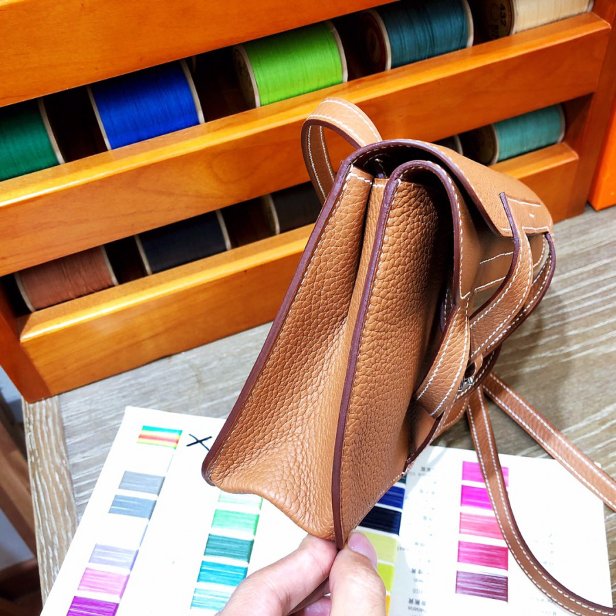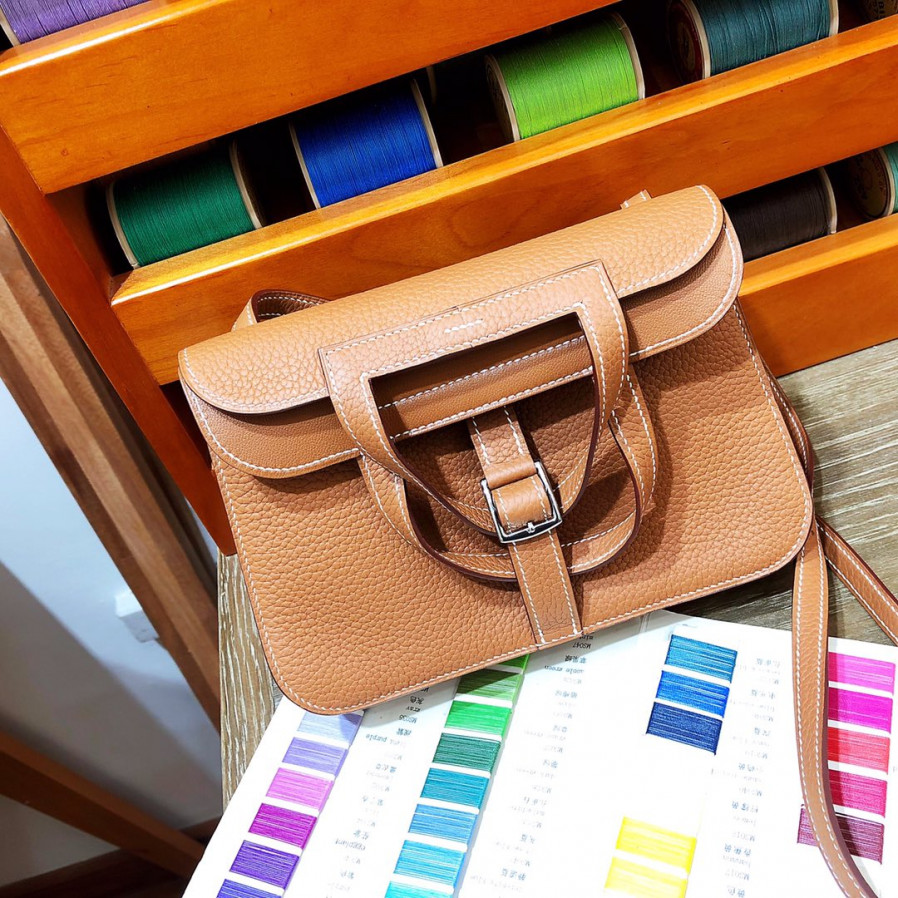 에르메스 미니 할잔백22 골드브라운 은장 끌레망스 가죽