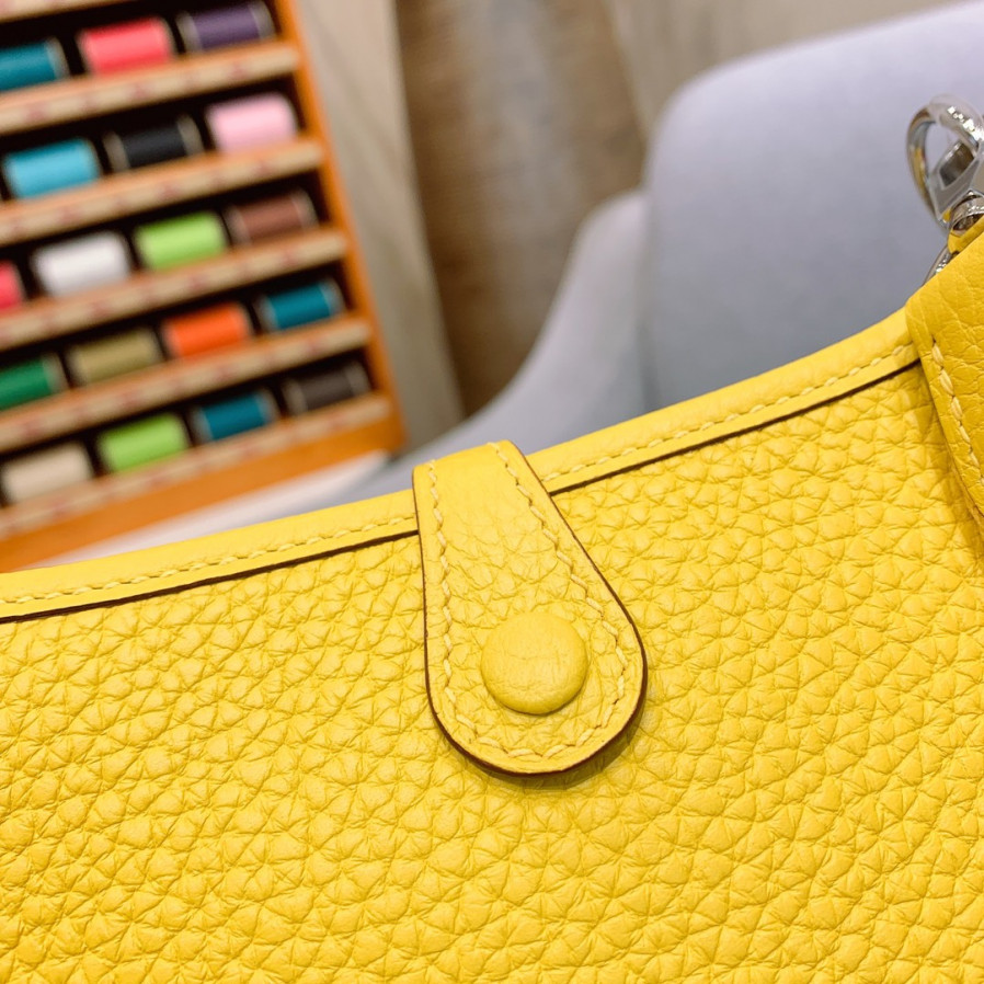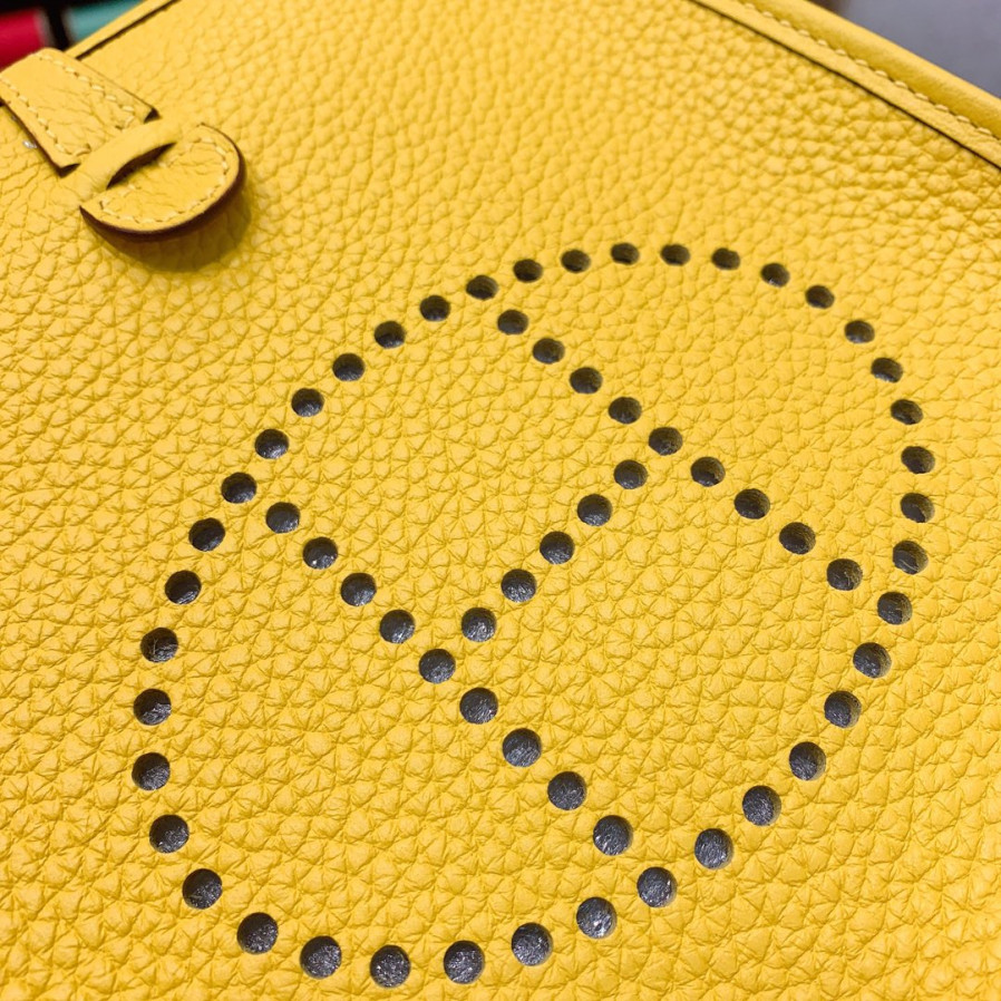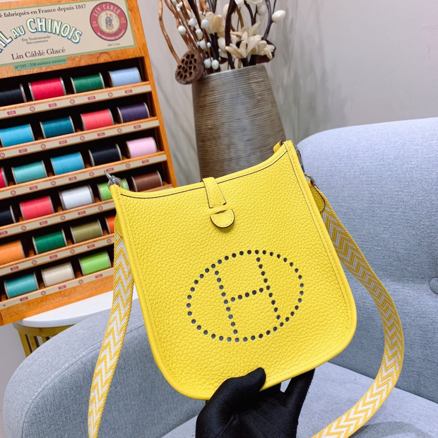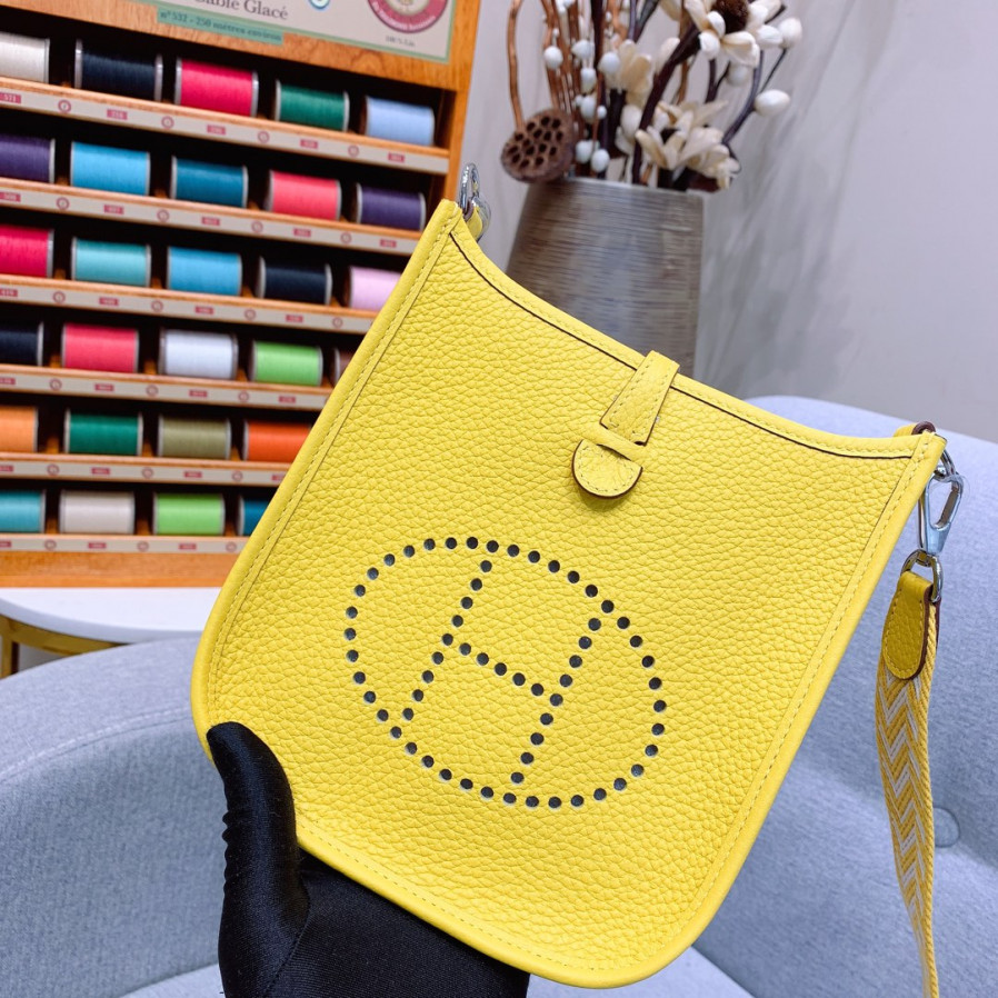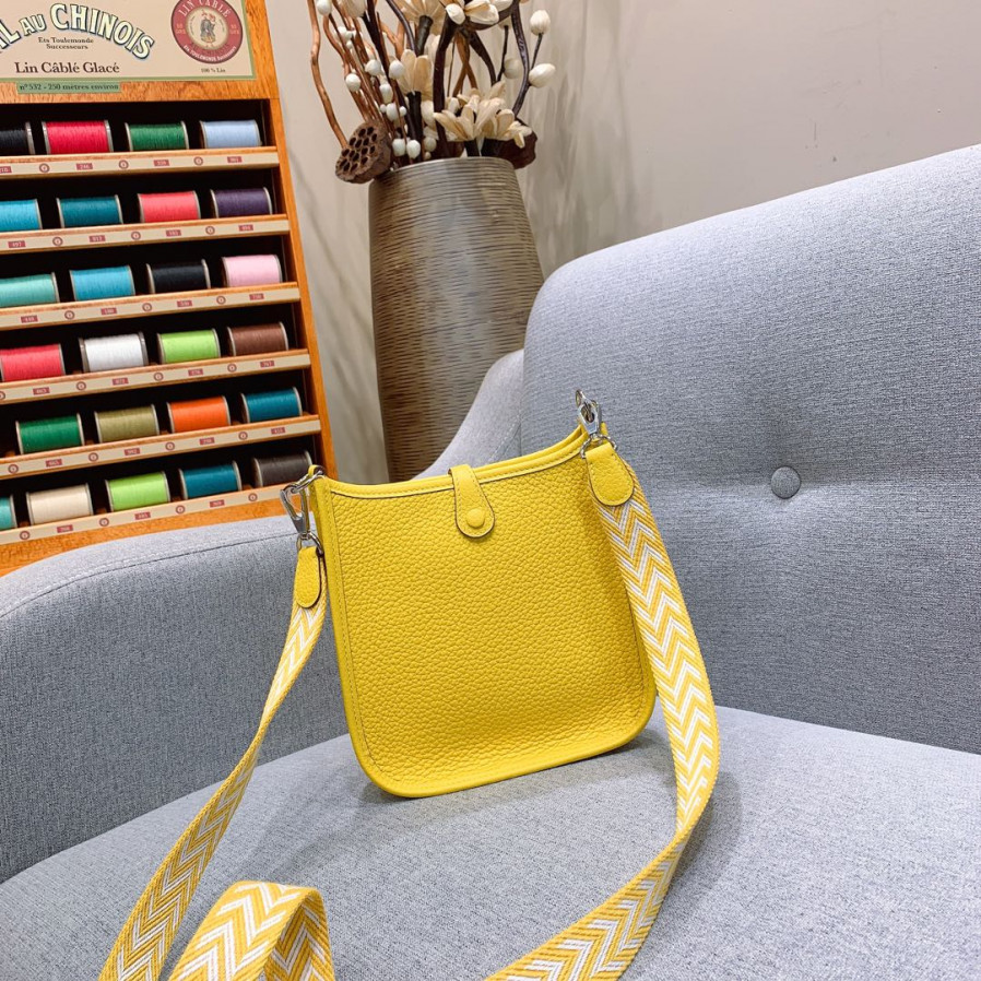 에르메스 미니 에블린16 라임 옐로우 은장 끌레망스 가죽
