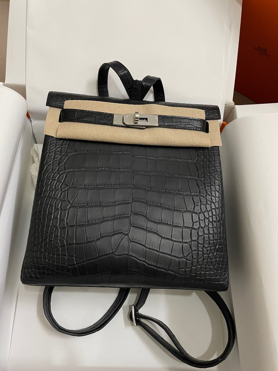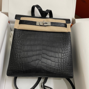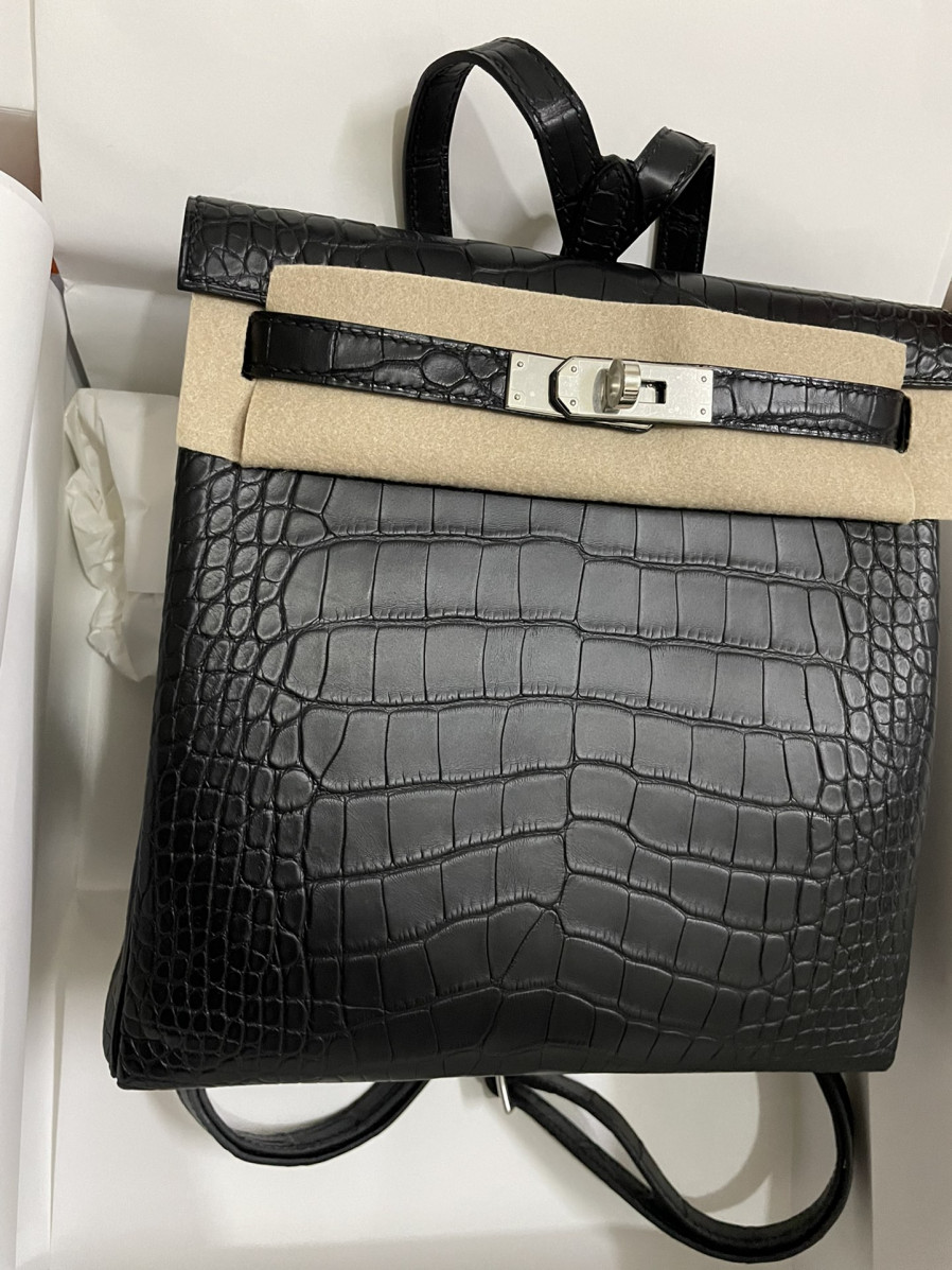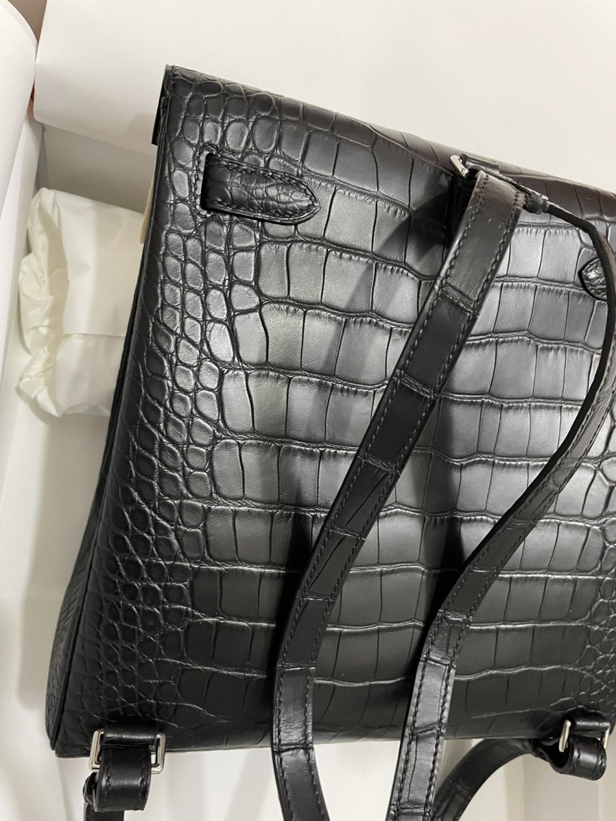 에르메스 켈리 아도 백팩 악어가죽 은장 블랙