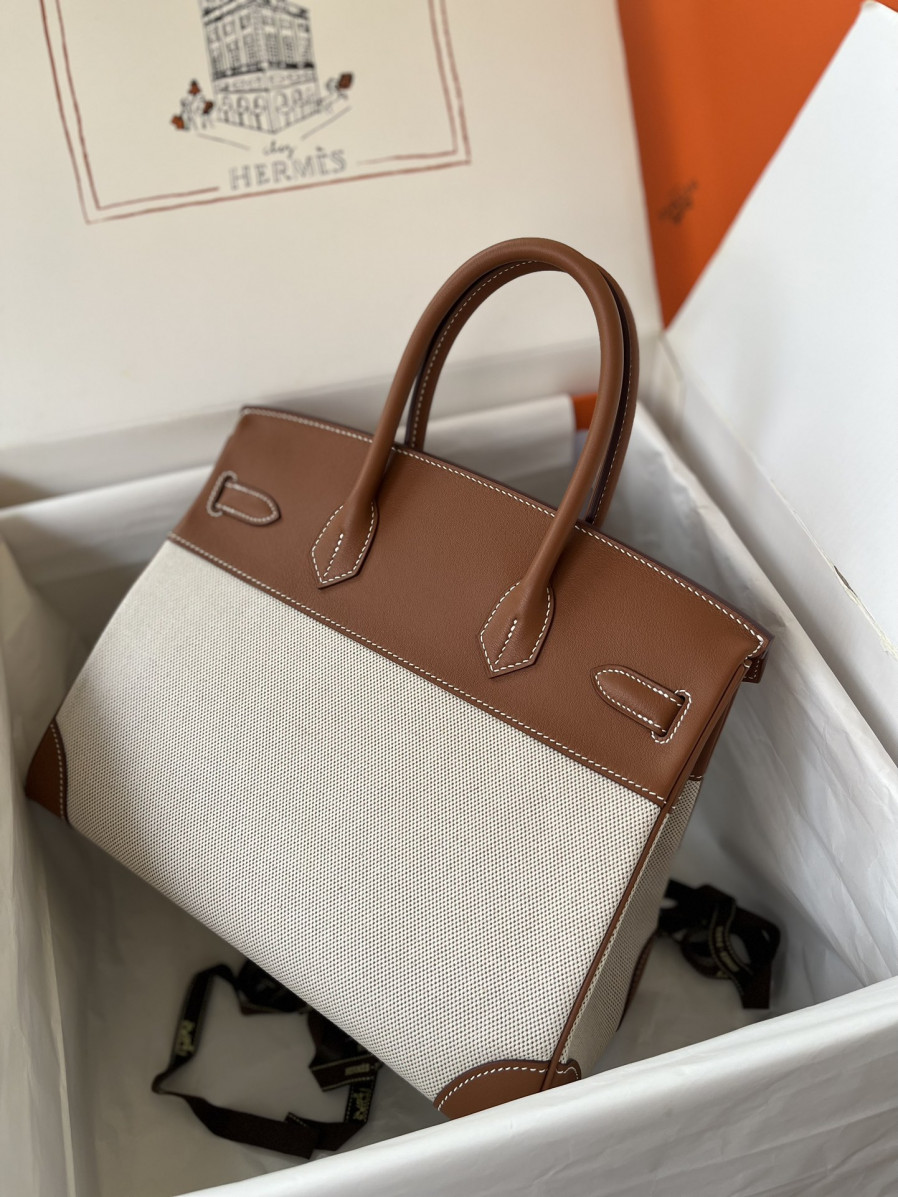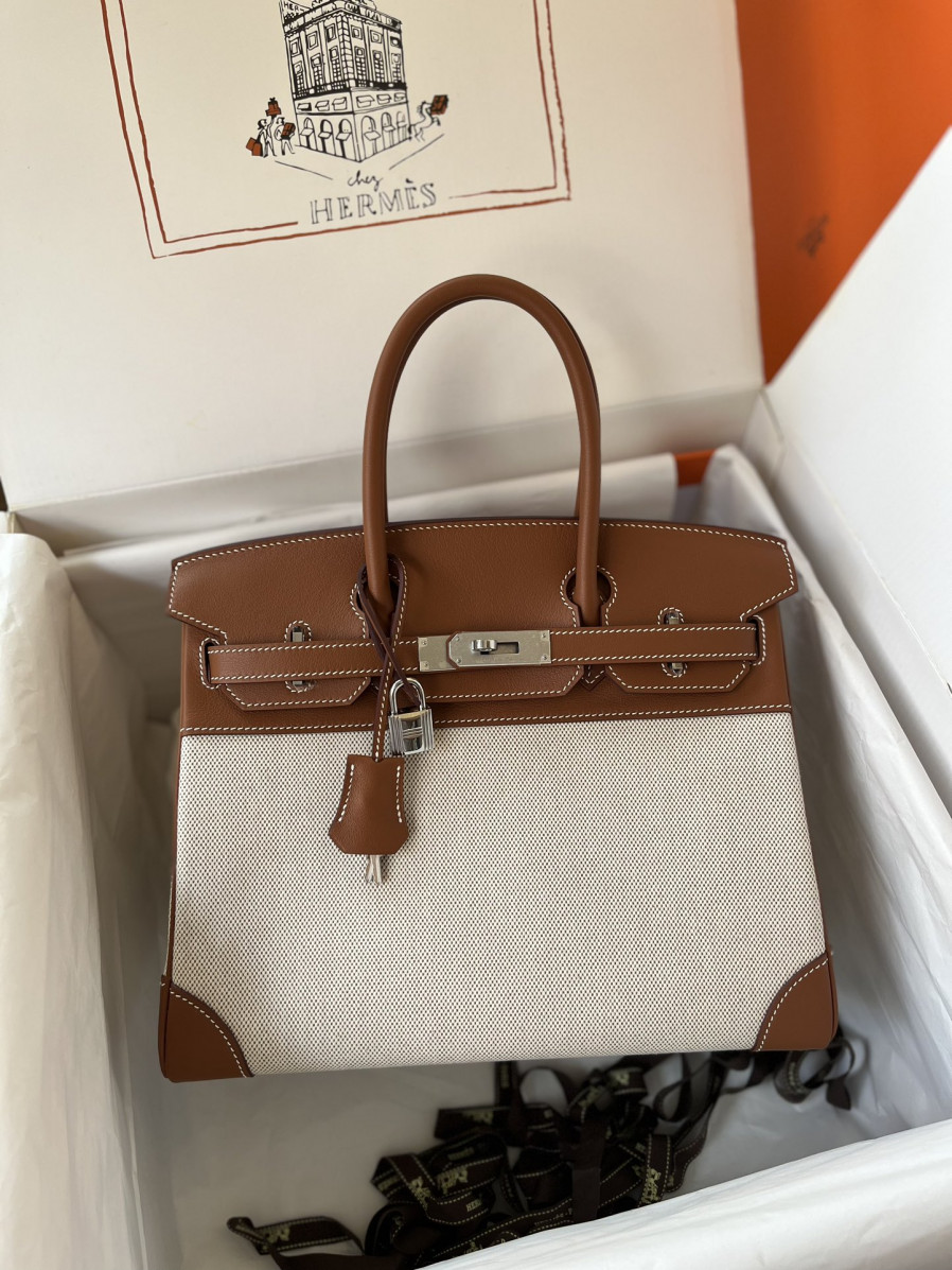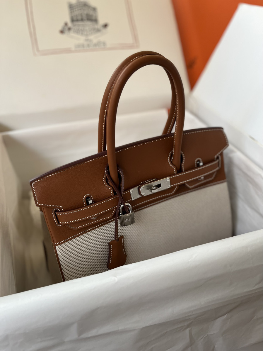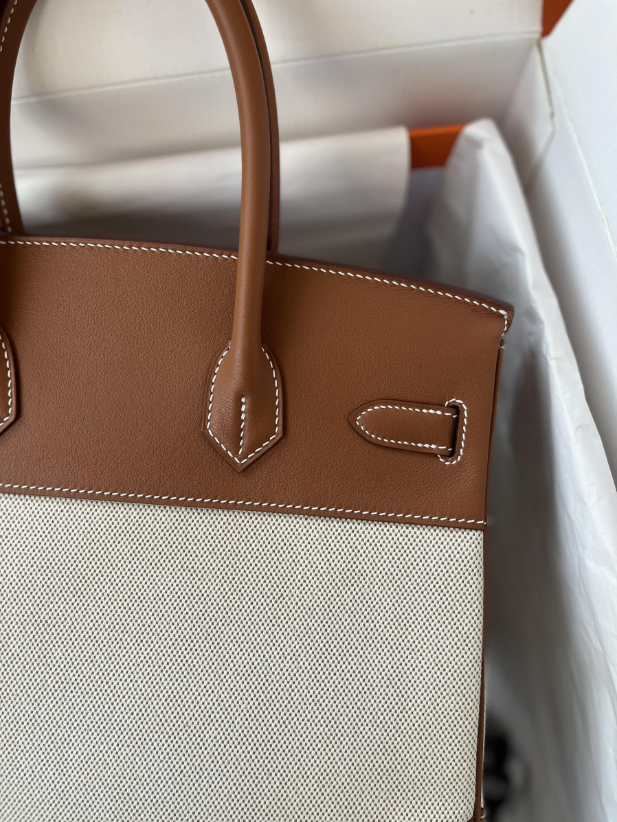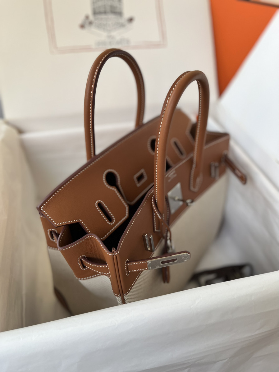 에르메스 버킨백30 골드브라운 캔버스 은장
