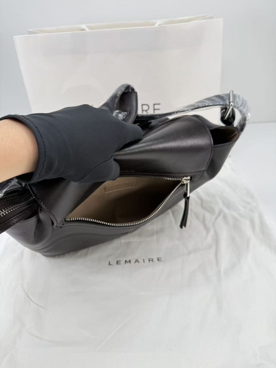 르메르 위크엔드 기어 백 나파 가죽 블랙 가로: 39cm 세로: 23cm 폭: 20cm > 여자