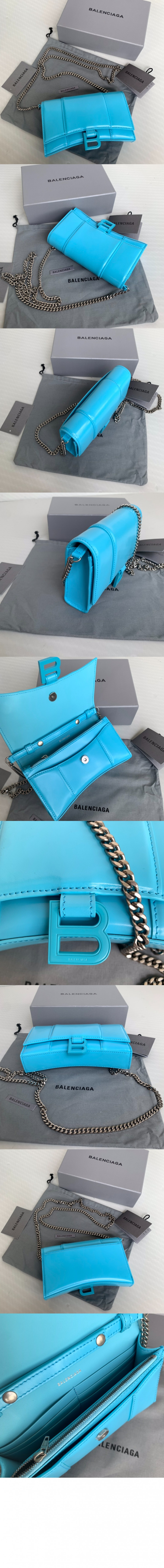 발렌시아가 아워글래스 크로커다일 엠보싱 월렛 온 체인 656050 > 여자