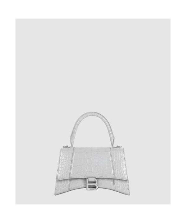 발렌시아가 아워글래스 XS 크로커다일 엠보싱 핸드백 화이트 593546