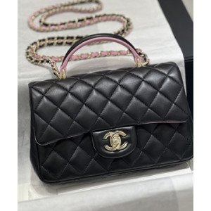 샤넬 핸들 미니 CF 플랩백 램스킨 블랙핑크