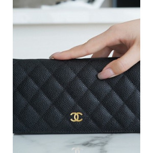 샤넬 클래식 롱 플랩 지갑 캐비어 금장 A31509