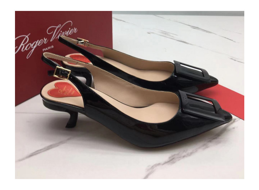 로저비비에 래커버클 페이턴트 레더 슬링백힐