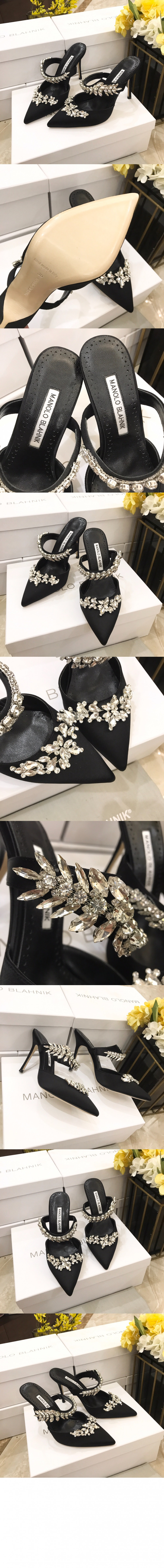마놀로블라닉 루럼 새틴 크리스탈 뮬