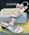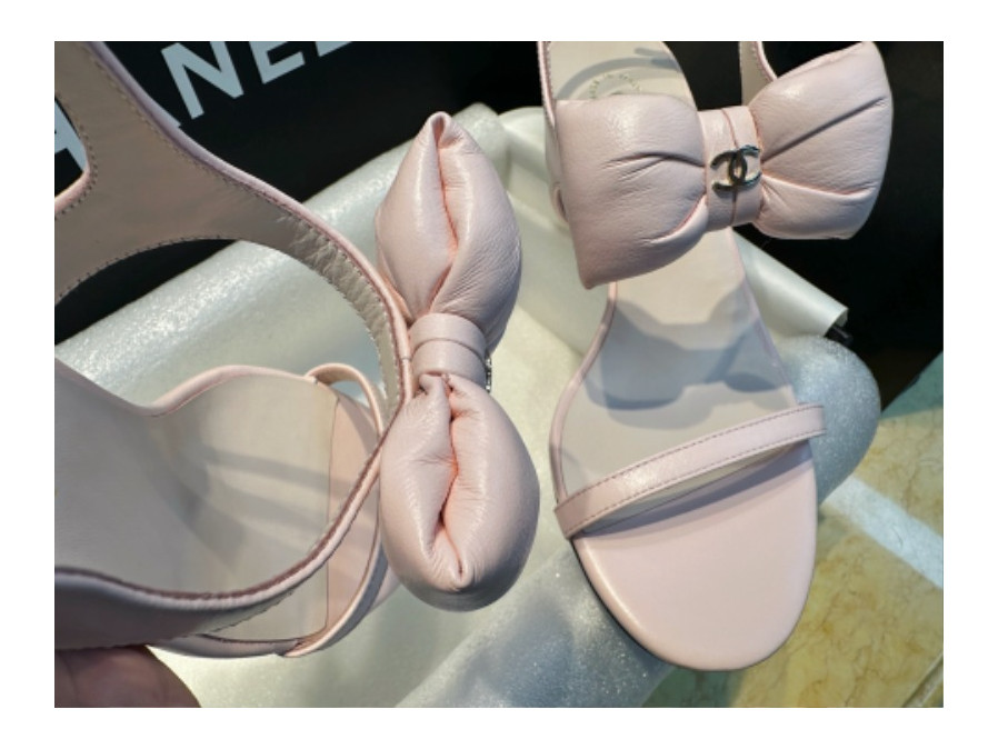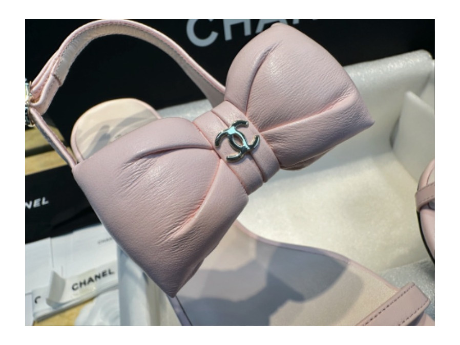 샤넬 리본 스트랩 미들힐 핑크 샌들