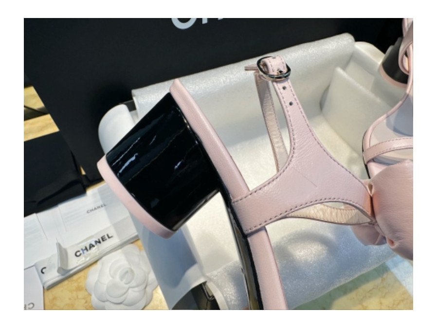 샤넬 레더 벨크로샌들 통굽가죽 스트랩샌들 G35927