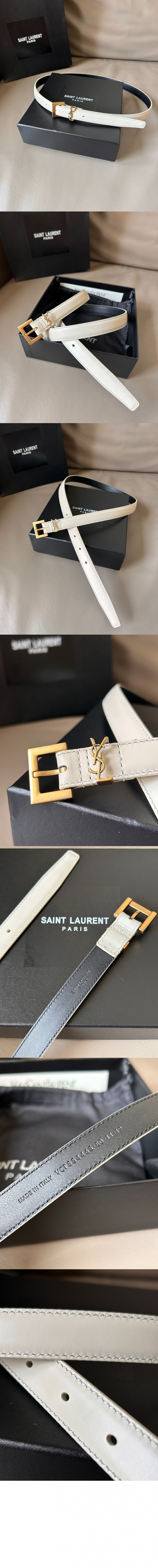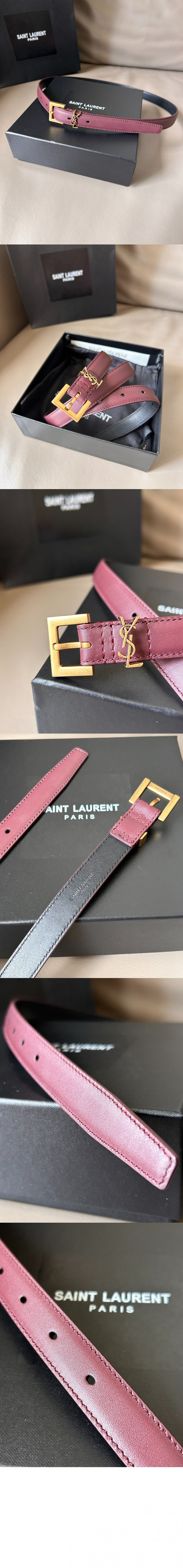 생로랑 래커 처리된 가죽 소재의 CASSANDRE 스퀘어 버클 장식 얇은 벨트 554465 > 여자