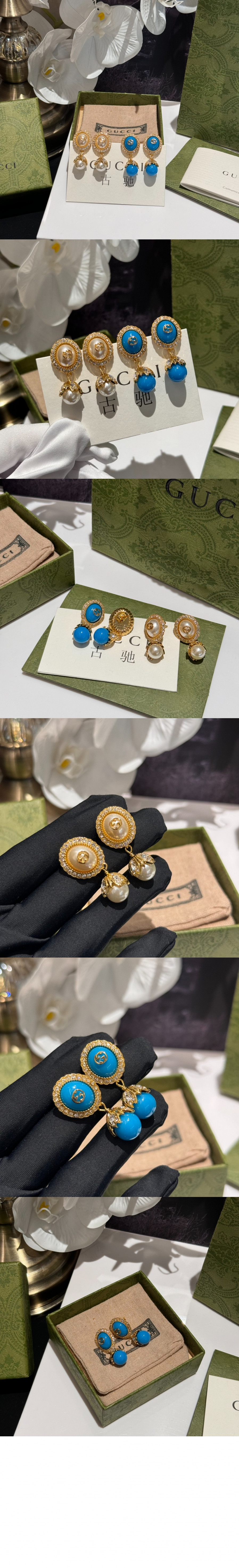 구찌 크리스탈 팬던트 귀걸이 766701