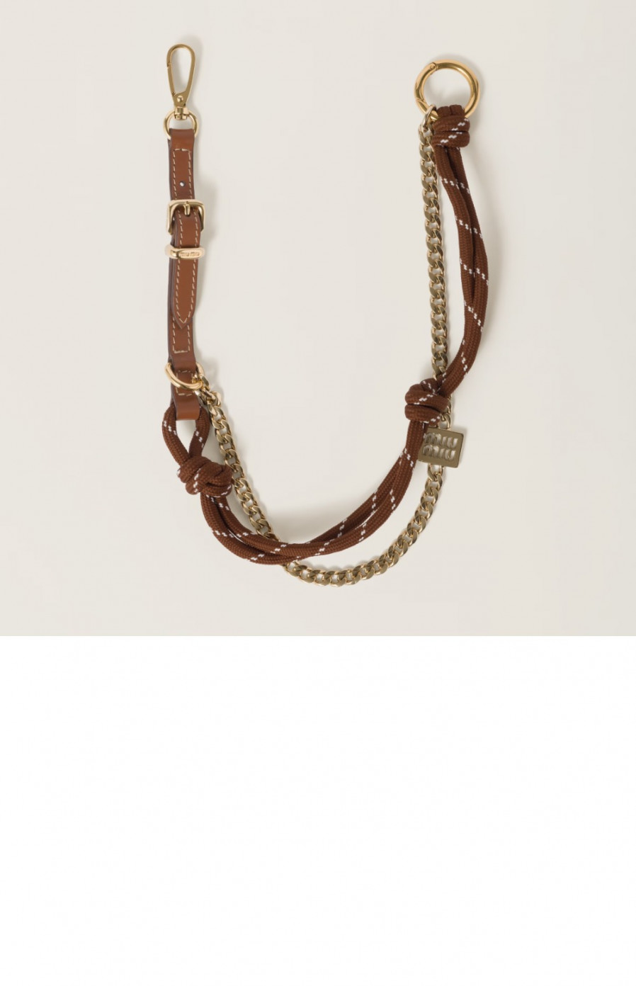 미우미우 가죽 코드 및 메탈 트릭 코냑토바코 5TL510