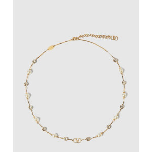발렌티노 크리스털 장식 브이로고 시그니처 메탈 네크리스