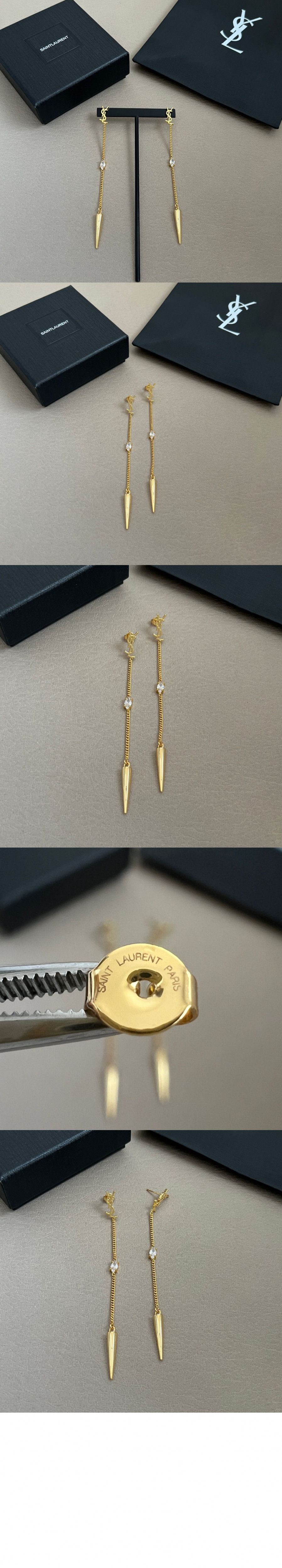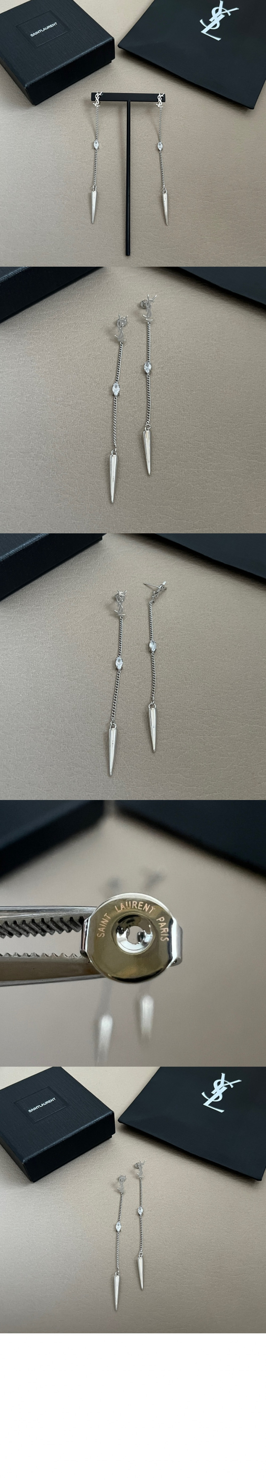 생로랑 라인스톤 스파이크 귀걸이 710726 > 여자